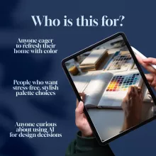 - Use cutting-edge AI tools to experiment with palettes and visualize your space before committing