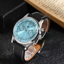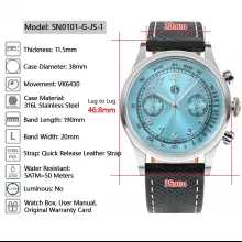 Crafted with a solid 316L stainless steel case and paired with a quick-release leather strap, this watch offers durability and comfort all day long. The dial comes in a selection of vibrant sunray finishes — from bold navy blue to a sleek light blue, green, or even a refined white — each giving off a refined, eye-catching shimmer under the light. Protected by a sapphire crystal with anti-reflective coating, this watch resists scratches and keeps clarity at its peak.