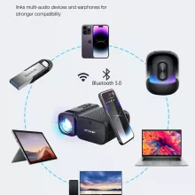 Thanks to advanced 5G WiFi screen mirroring and Bluetooth 5.0 technology, connecting your favorite devices—like smartphones, laptops, and wireless speakers—is effortless. Simply pair and play with zero hassle. The sleek and lightweight design makes it easy to take the projector on trips, to the backyard, or from room to room without missing a beat.