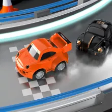 Despite its small size, this RC car comes fully loaded. With a responsive 2.4GHz wireless remote control and a control range of up to 98 feet, you can race without interference. Enjoy up to 80 minutes of playtime on a single charge, with fast charging in just 50 minutes. The integrated LED headlights and engine sounds add a realistic driving experience, while its handy storage container makes it perfectly portable – ideal for travel or spontaneous playtime anywhere.
