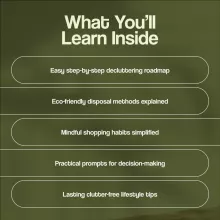 Unlike generic decluttering checklists, this guide blends minimalism with eco-friendly practices to ensure you’re not just clearing clutter but also making choices that reduce waste and protect the planet. It’s designed for conscious individuals who want a lifestyle that’s sustainable, intentional, and clutter-free. Perfect for beginners to minimalism or anyone seeking a mindful reset, this workbook is your roadmap to lasting simplicity.