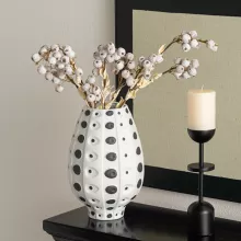 Crafted from high-quality ceramic, this vase features a durable structure with a smooth, glossy finish. The black and white speckled pattern is hand-applied, giving each vase a unique look with artistic charm. Sized to fit medium arrangements, it’s perfect for fresh flowers, dried blooms, or even as a standalone sculpture. This modern centerpiece enhances contemporary, minimalistic, and Scandinavian-inspired interiors, offering endless styling possibilities across seasons and moods.