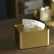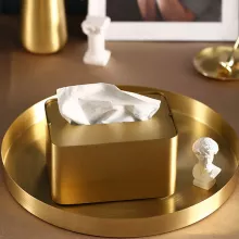 Made from high-quality brass, this tissue canister showcases a rich, warm tone and a subtly textured surface that exudes an advanced, artistic charm. Its seat-type design makes it easy to place on coffee tables, countertops, or consoles, ensuring tissues are always within reach while blending seamlessly into modern interiors. Whether for everyday use or as a decorative accent during dinner parties, this piece delivers both beauty and function.