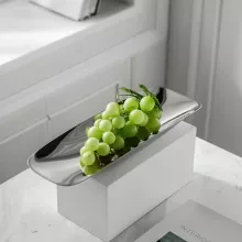 Crafted from high-quality stainless steel, this fruit plate is durable, rust-resistant, and designed for long-lasting beauty. The openwork structure not only enhances airflow to keep fruits fresher longer, but also delivers a visually striking look. The sleek, polished finish reflects light beautifully, making this dish an instant standout. Its spacious rectangular form is ideal for holding larger portions or displaying decorative items in style.