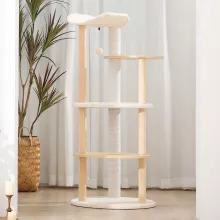 Give your cat the ultimate playground with this Modern Wooden Cat Tree Tower. Designed for both comfort and entertainment, this multi-level cat tree features a sleek, modern look that complements any home decor. The warm beige tone blends seamlessly with your furniture, while the sturdy wooden structure ensures long-lasting durability. Whether your cat loves climbing, scratching, or lounging, this cat tree has everything they need to stay happy and active.