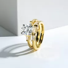 Perfect for engagements, anniversaries, or any meaningful moment, this ring set is crafted to last and impress. Its trendy yet classic prong setting allows the main stone to catch light from every angle, delivering maximum sparkle. Whether you’re proposing or saying “I do,” this piece makes the occasion unforgettable.