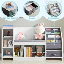 This multifunctional reading nook is perfect for nurseries, playrooms, bedrooms, or any space where kids love to read, play, and imagine. It’s the ideal way to foster a love for books and creativity while keeping everything organized. Whether your child loves comics, picture books, or art projects, this bookcase has space for it all – making it easy to access and keep things tidy. The spacious cushioned bench allows for comfortable reading sessions and sharing stories, making it a cozy place for siblings or friends to sit together and enjoy their favorite books. It’s not just a bookcase; it’s a creative, fun, and organized environment for your little one.