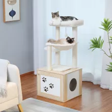 Crafted from solid wood, this tree offers a cool, breathable surface that’s perfect for summer months. The spacious design supports 3 to 5 cats at once, making it a great choice for households with multiple pets. The wide condo offers a private retreat or even space to discreetly place a litter box, while the large top perch and swinging hammock give your cats endless spots to rest and observe their surroundings.