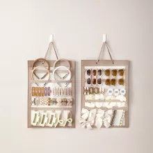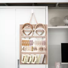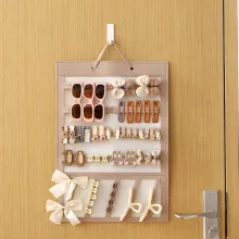 Say goodbye to cluttered drawers and lost hair clips! This versatile hanging organizer is designed to keep your hair bows, clips, scrunchies, and sunglasses perfectly organized in one convenient place. Made from durable polyester, it offers a sturdy yet lightweight solution that easily hangs behind doors or on walls, making the most of your space without taking up any room on your dresser or countertop.