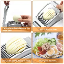 Say goodbye to messy cuts and uneven slices! The Multifunction Egg Slicer Cutter is the kitchen gadget every home chef needs. Designed for both simplicity and precision, this compact yet powerful tool effortlessly slices hard-boiled eggs and a variety of other soft foods in seconds. With its premium aluminum alloy construction and cleverly designed egg slot, it offers a hassle-free slicing experience that’s safer than using a knife and far more effective.