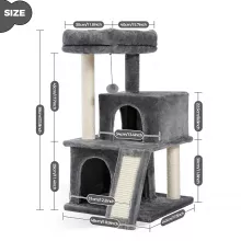 This multilevel cat tree is more than just a piece of furniture; it’s a haven for your cat’s health, happiness, and well-being. It’s the perfect solution for cats who love to scratch, climb, and explore. The high perch lets your cat enjoy a panoramic view of their kingdom, while the private condos give them the comfort they crave for napping or hiding away. The integrated sisal scratching post ensures your cat’s claws stay in top condition, and the replaceable balls offer an added layer of entertainment.