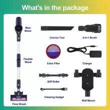 - Multiple Attachments: The vacuum comes with a motorized floor brush for deep cleaning, a crevice tool for tight spaces, and a 2-in-1 upholstery brush for fabrics, ensuring versatile cleaning across all surfaces.
