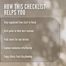 This checklist is ideal for outdoor enthusiasts, travel lovers, road-trippers, photographers, and families seeking memorable adventures in nature. It stands out from other resources because it blends practical trip-planning tips with inspiring prompts to document and cherish your journey—making it both a tool and a keepsake.