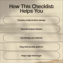 Unlike generic cleaning guides, this checklist is created specifically for natural fibers, addressing their unique needs. It combines professional care advice with eco-friendly practices, giving you peace of mind that your furniture will last for years while maintaining its organic appeal.