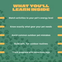 This digital guide is perfect for pet parents who love hiking, exploring, and spending time outdoors with their furry friends. Whether you live near the beach, in the city, or close to forest trails, this guide will help you make the most of your environment—safely and with joy.