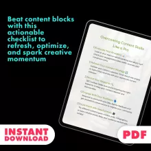 Feeling stuck on what to post next? Overcoming Content Stalls Like a Pro is your go-to digital checklist that shows you exactly what to do when your content stalls. Whether you’re a creator, blogger, or entrepreneur, this easy-to-follow resource helps you keep your ideas fresh, your audience engaged, and your content strategy flowing—without the stress of creative burnout. Simple, actionable, and designed for busy professionals, this checklist will quickly become your secret weapon to consistent, effective content creation.