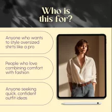 Step up your style game with Oversized & On Point: Your Ultimate Guide to Styling the Perfect Oversized Shirt – the must-have digital download for anyone who loves the effortless, chic vibe of an oversized shirt but wants to master the art of wearing it right. Whether you’re aiming for a relaxed coffee-run look, an elevated office outfit, or a night-out statement, this guide will teach you how to style an oversized shirt with confidence and flair. Packed with pro tips, outfit inspiration, and easy-to-follow styling strategies, it’s your shortcut to looking polished without sacrificing comfort.