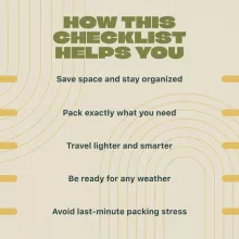Unlike generic packing lists, our Packing Checklist for Every Adventure are tailored to suit different destinations, climates, and activities. You’ll get actionable tips, smart packing hacks, and KEYWORDS that help you make the most of your luggage space—without sacrificing comfort or style.