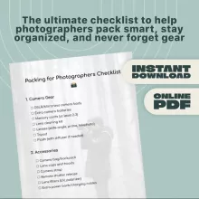 Don’t let missing batteries, forgotten lenses, or overlooked essentials hold you back. Download the Packing for Photographers Checklist today and make every shoot stress-free, organized, and professional. Stay prepared, stay creative, and focus on capturing the moments that matter most.