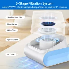 This grooming vacuum is equipped with advanced 5-stage cyclone technology and a high-density HEPA filter that captures up to 99.99% of microscopic dust and allergens as small as 0.1 microns. With an ultra-quiet operation under 59dB, even anxious pets can relax during grooming. The one-button dust emptying system makes cleaning quick and hassle-free.
