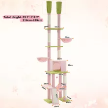 Give your furry friend the ultimate playground with this Pink Cat Tree Floor to Ceiling Tower. Designed with both style and functionality in mind, this multi-tiered cat tree features a unique cactus shape that will not only grab your cat’s attention but also blend seamlessly into your home decor. Whether your cat loves climbing, scratching, or lounging, this cat tower has it all. With 7 tiers, 5 platforms, cozy hammocks, and spacious condos, your kitty will have endless opportunities to climb, scratch, and relax. Plus, it’s designed for spaces of all sizes with its adjustable height from 85 inches to 112 inches, so it’s perfect for any room in your home.