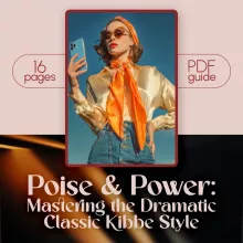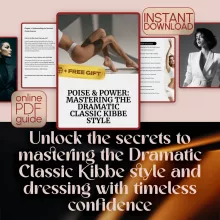 This digital guide isn’t just about fashion; it’s about embracing your unique Dramatic Classic Kibbe type with confidence. Unlike other styling guides, “Poise & Power” is focused on practicality, with easy-to-follow advice tailored specifically to your body type. Whether you’re dressing for work, casual outings, or evening events, you’ll find outfit inspirations, must-have wardrobe staples, and expert tips for accessorizing with understated drama. Plus, you’ll gain a deeper understanding of the Kibbe Body Typing System and how it applies to real-life fashion choices.