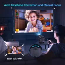 - Easy to set up with a 180° rotatable stand and auto keystone correction for perfect alignment.