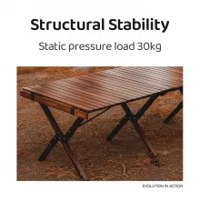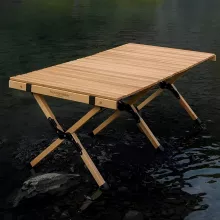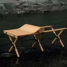 The table features a roll-up “egg roll” style design that makes it incredibly easy to assemble and disassemble within minutes. Its foldable structure allows you to pack it compactly into your car, RV, or backpack without taking up much space. The solid wood surface ensures a stable and flat tabletop, ideal for food, drinks, gear, or board games. No tools are required—just unfold and enjoy!
