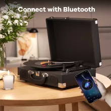 Get ready to enjoy your favorite records in a whole new way with this portable, stylish, and high-performing record player. Take the first step in creating unforgettable music memories. Whether you’re relaxing, entertaining guests, or simply vibing to your favorite tunes, this turntable is the perfect companion to elevate your listening experience.