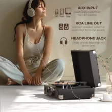 - Four Connection Options: Enjoy versatile audio connections with Bluetooth streaming, RCA output for external speakers, an aux-in for non-Bluetooth devices, or use your headphones for a more private listening experience.