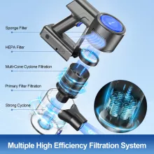 This vacuum features a 5-stage high-efficiency filtration system that captures up to 99.99% of particles as small as 0.1 microns. It not only traps allergens and dust but also purifies the air—making it perfect for homes with pets, kids, or allergy sufferers. The bagless design and 0.6–1 liter dust box make disposal quick and mess-free.