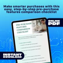 Don’t waste money on products that don’t deliver. Download the Pre-Purchase Features Comparison Checklist today and start shopping smarter. With this easy-to-follow guide, you’ll know exactly what to look for, what to avoid, and how to confidently choose the best option for your needs. Click “Add to Cart” now and get instant access to this must-have resource for smarter shopping decisions.