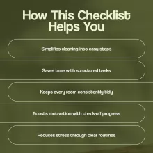 - Bonus Tips: Fun cleaning hacks, music motivation, quick-clean timer tricks, and ways to freshen the air