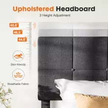 - Adjustable Headboard: Tailor the headboard’s height to your preference, ranging from 44.8 inches to 48.8 inches. Perfectly suited for mattresses between 8 and 14 inches, it ensures an optimal setup for your bed.