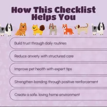 This checklist is perfect for anyone welcoming a rescue dog or cat into their home. Whether you’re a new pet parent, an experienced adopter, or someone supporting a friend or family member through pet adoption, this guide offers clarity, encouragement, and professional insight into responsible rescue pet care.