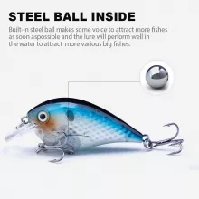 Add this rattling crankbait fishing lure to your tackle box and enjoy more successful fishing trips. Its lifelike appearance, irresistible rattling sound, and reliable floating action make it a must-have for anyone targeting bass, pike, and other predatory fish. Cast it, reel it in, and get ready for more strikes on every trip!