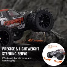 - Ultimate Speed and Control: With a 24,000 RPM motor, this truck can reach speeds of up to 38 km/h, providing thrilling action. The stepless speed regulation feature allows you to switch from slow-paced crawling to high-speed racing, making it suitable for both beginners and experienced racers.