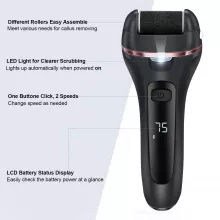 Its ergonomic, portable design fits comfortably in your hand while delivering salon-quality results. With three interchangeable quartz grinding heads and two speed settings, it caters to all your foot care needs — from deep callus removal to gentle exfoliation. A built-in LED light ensures no spot is missed, while the easy-to-read LCD battery display lets you know exactly when it’s time to recharge.