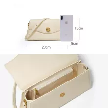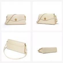 Crafted from high-grade split cowhide leather, the bag boasts a structured, refined shape that holds its form and adds architectural interest to your look. The baguette silhouette tucks neatly under the arm or can be worn as a crossbody thanks to its versatile single strap. With its solid color, sleek cover closure, and minimalistic exterior, this piece is a canvas of elegance, ready to elevate your wardrobe.
