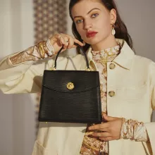 Its charm lies in the details. The split leather construction offers a firm, sculpted look that stands out while remaining timeless. It’s a nod to vintage elegance, yet fully designed for the woman of today—someone who embraces both tradition and transformation. The interior compartments keep your essentials neatly organized, and the sleek flap design adds an artful finish to any outfit.