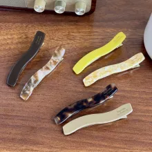 Each clip measures approximately 2.6 inches long and 0.6 inches wide—perfectly sized for both subtle styling and bold accents. Crafted from high-quality acetate with a sturdy alloy clasp, these clips offer both beauty and durability. Their smooth finish and vibrant color choices make them versatile enough to match any outfit or occasion.