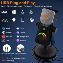 Ready to make your voice stand out? This RGB USB microphone blends professional-grade audio with stylish, intuitive features to elevate your content. From gaming to music to content creation, it delivers the performance and versatility today’s creators need. Plug it in, light it up, and let your voice shine.
