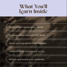 - Practicality: Learn exactly how to style distressed denim for casual, business casual, and chic looks.