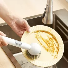 Say goodbye to stubborn grease and messy sponges with our Rotating Dish Brush with Long Handle & Liquid Storage. Designed for efficiency and comfort, this kitchen essential makes scrubbing pots, pans, and dishes a breeze. With a smart built-in soap dispenser and a long ergonomic handle, you’ll clean more with less effort — and without getting your hands dirty. Available in elegant green or clean white, it adds a modern touch to any kitchen.