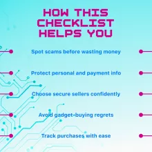 Stay one step ahead of scammers and enjoy shopping for your favorite tech with total confidence. Download your Safe Online Shopping for Gadgets Checklist today and make every purchase safer, smarter, and hassle-free. Perfect for anyone who loves gadgets, values security, and wants a stress-free shopping experience. Don’t risk your money or data—get your checklist now and shop with peace of mind.