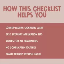 This guide is perfect for anyone who wears scent daily, fragrance collectors who want to get the most out of their bottles, or gift-givers looking to pair a perfume with an expert care guide. Whether you’re a minimal spritzer or a scent-layering pro, this checklist will help you smell amazing for hours longer.