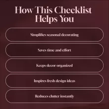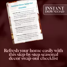 Get ready to enjoy a home that feels fresh, organized, and beautifully in tune with every season. Download the Seasonal Decor Swap-Out Checklist today and make seasonal decorating easy, stress-free, and fun. Your home deserves to shine—let this digital guide help you make it happen!