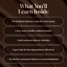 - Chapter 3: Avoiding Common Skincare Mistakes – Avoid common skincare missteps that could hurt your skin, learn how to read labels for seasonal needs, and discover AI tools that provide personalized recommendations.