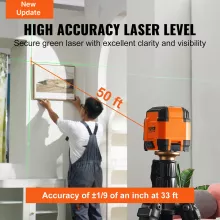 - High Accuracy & Visibility: With an impressive accuracy of ±1/9 inch at 33 feet, this laser level provides a bright, clear laser beam for precision. Its 50 ft working distance allows for expansive projects, minimizing the need for repositioning.
