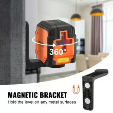 The Laser Level is designed to make your projects simpler and more efficient. Whether you are a professional or a DIY enthusiast, this tool is perfect for aligning furniture, hanging pictures, installing lighting, and more. The self-leveling feature ensures you get accurate results every time, while the manual mode provides flexibility for different applications. With its 50 ft range, the laser level allows you to cover large areas without constantly moving it. Plus, the built-in magnetic mount and threaded design make it easy to mount and adjust the height, saving you time and effort.
